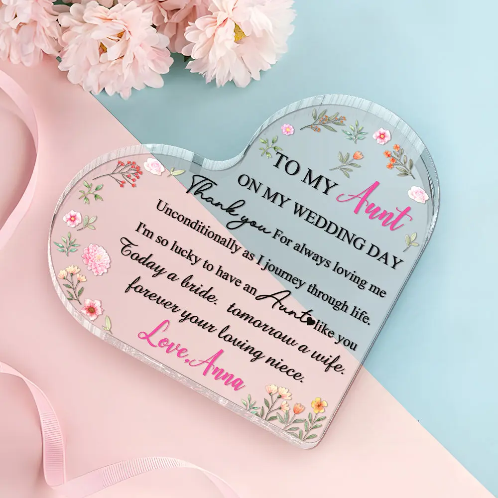 Personalized Aunt Of The Bride Heart Acrylic Plaque Custom Wedding Gift for Auntie From Bride