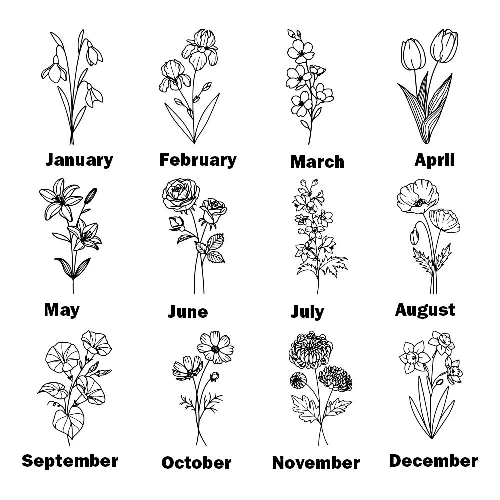 Personalized Birth Flower PU Leather Makeup Brush Bag with 8 Pcs Makeup Brushes Birthday Gift for Her