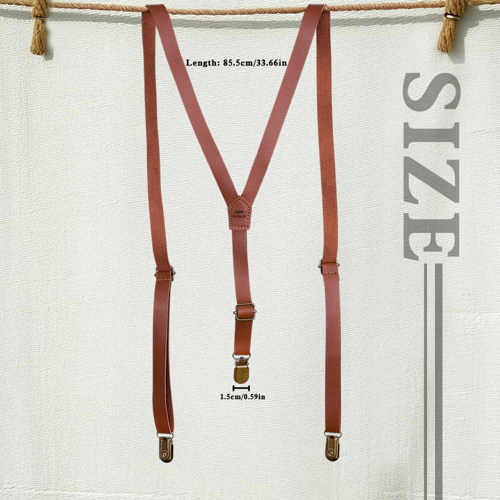Elevate any outfit with our Personalized Men’s Suspenders. Made from high-quality PU, these suspenders are not only stylish but also durable. With the option to engrave a name, they make for a unique and thoughtful gift for any man. Perfect for groomsmen or as a personal accessory.