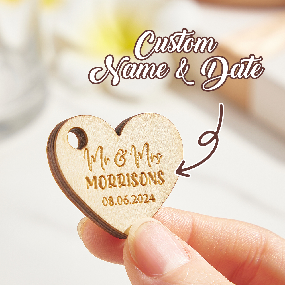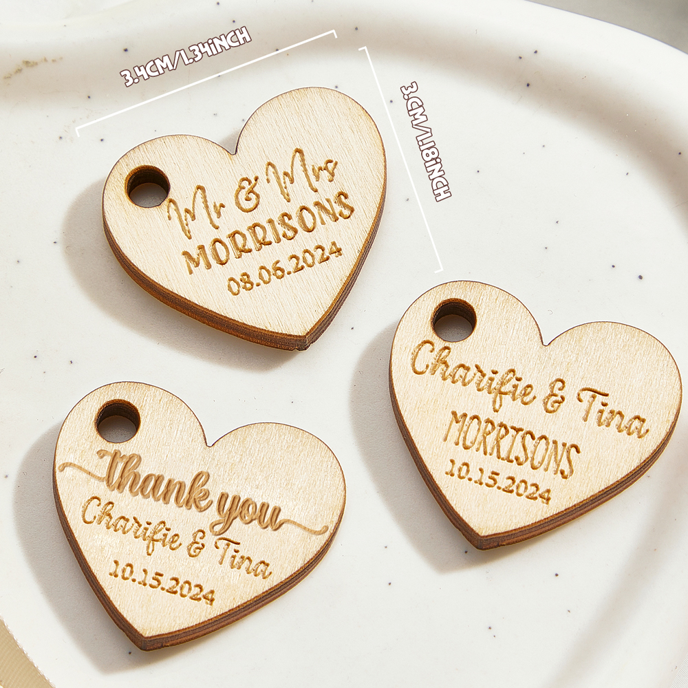 Personalized Wooden Heart Tags with Engraved Text Wedding Party Favor Gift for Guests